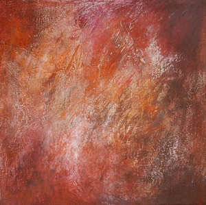 2020Dit werk is een echte blikvanger in iedere kamer. Mede door de intense kleuren, (waaronder rood en goud) en de verschillende lagen, heeft het werk een haast mystieke uitstraling.