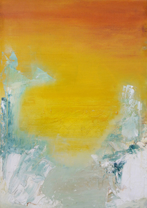 2013'Pronkstuk' is niet voor niets de titel van dit werk, aangezien het echt een ijkpunt in een ruimte vormt. Het heeft iets mysterieus en zal door het warme geeloranje zeker de aandacht trekken. Het schilderij is opgebouwd uit heel warme, en intense geel en oranje kleuren enerzijds, maar daarnaast heeft het ook bijna ijzige, blauwwite tonen die een groot contrast met elkaar vormen. Naast olieverf zijn er andere materialen gebruikt die het werk structuur en diepte geven.